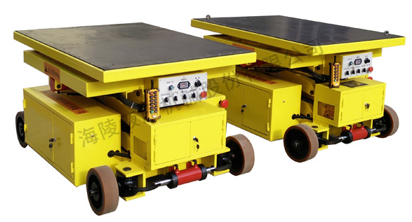 設備組成為液壓泵站驅(qū)動的升降平臺,升降平臺上工作臺面可實現(xiàn)前應移動及旋轉(zhuǎn),整個平臺可實現(xiàn)縱橫向的行走,由電機驅(qū)動實現(xiàn)行走功能,可以自由運行,即能夠?qū)崿F(xiàn)縱向、橫向。