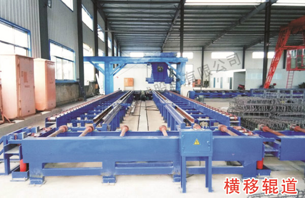 我公司生產(chǎn)的橫移輥道是一種物流輸送設(shè)備,它包括一個框架,框架的安裝板上安裝有橫移電機,框架的上端可移動配合設(shè)置輥道機主體,輥道機主體的兩端豎直向下延伸部與傳動鏈條兩端相連接,所述傳動鏈條經(jīng)由橫移電機兩側(cè)的傳動鏈輪導(dǎo)向后與橫移電機輸出軸上固定的主動鏈輪相嚙合。