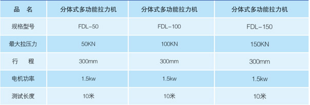 我公司生產(chǎn)的FDL系列分體式多功能拉力機是本公司在臥式拉力機的基礎(chǔ)上專門為電力部門設計制造的一種多功能拉壓試驗設備,